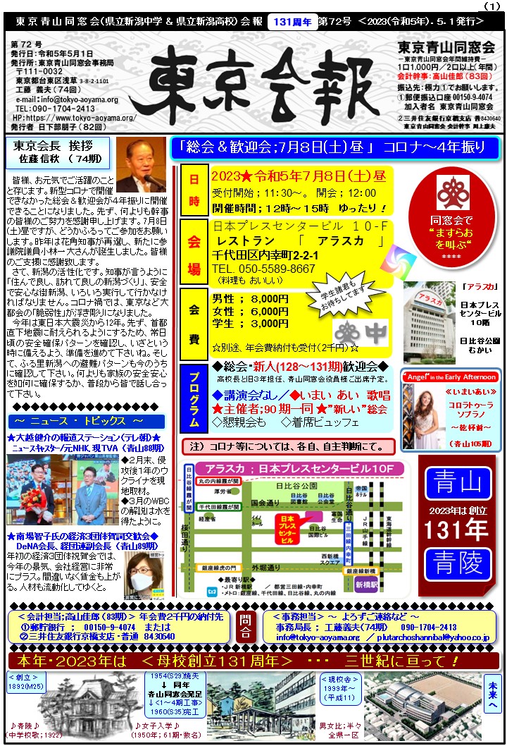 東京会報 第72号 2023.5.1発行 2023.05.01